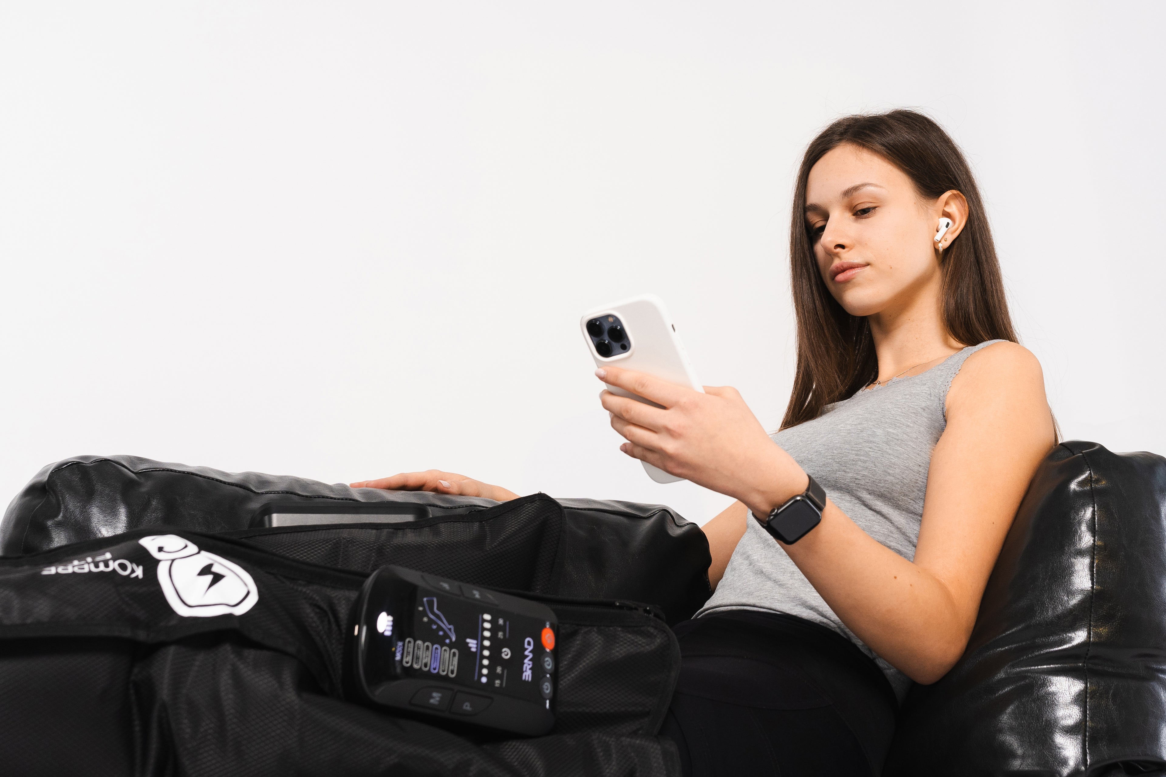 Představ si, že si po tréninku nebo náročném dni lehneš, zapneš nohavice a cítíš, jak ti z nohou mizí tíha, otok i únava. Přesně to je efekt KompreFitu.